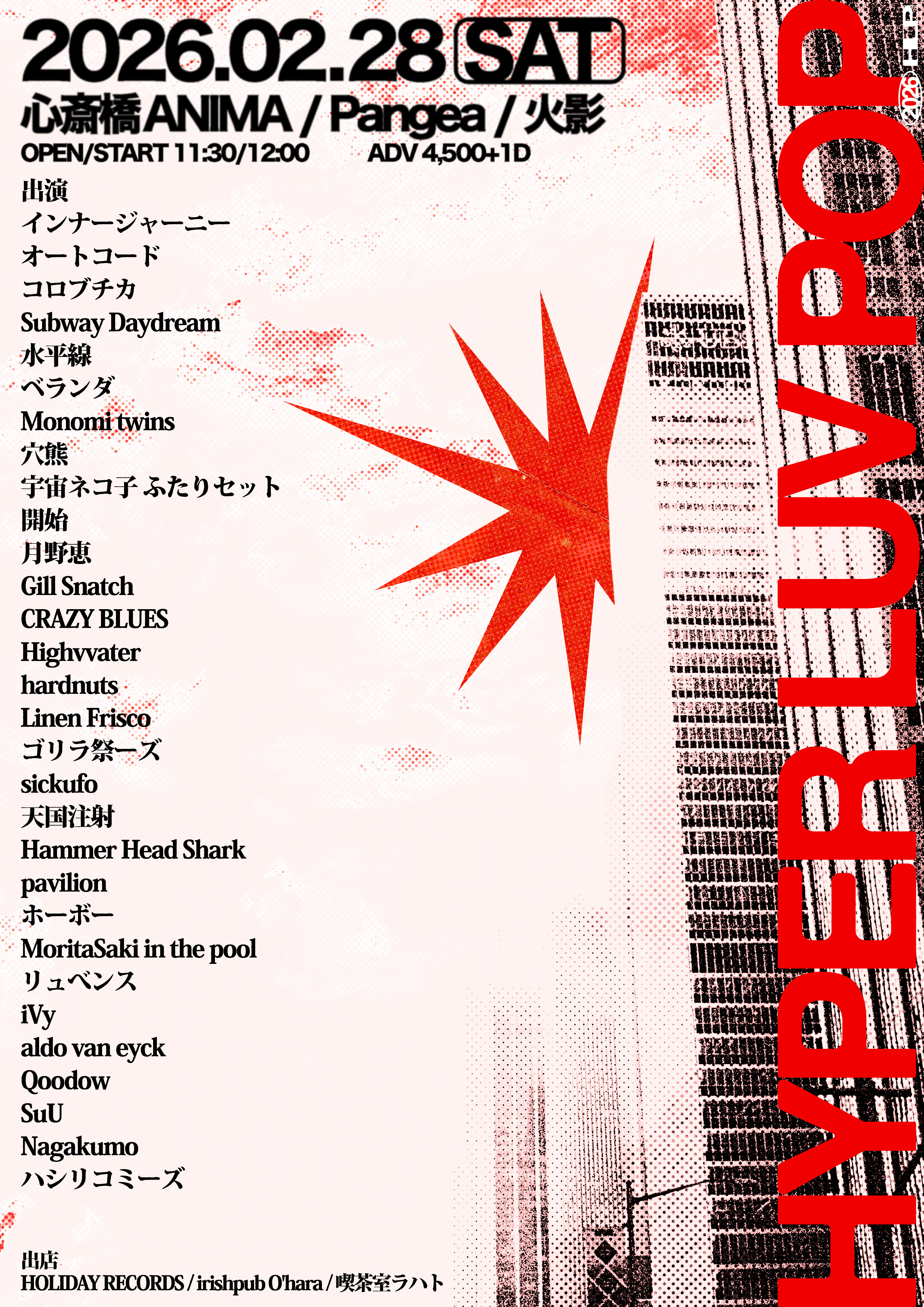 OPEN 17:30 START 18:00 PRICE ADV ¥4000 DOOR ¥4500 +1drink(¥600)