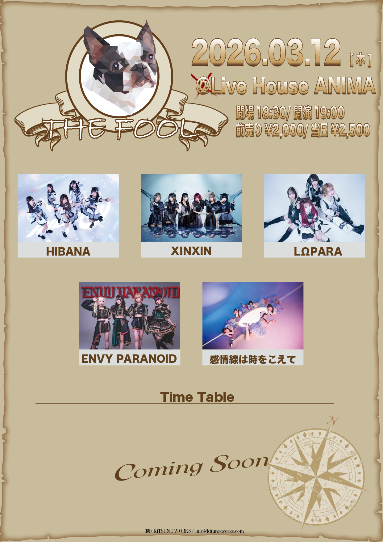 OPEN 18:30 START 19:20 PRICE S ¥8000 A ¥2500 DOOR ¥3000 +1drink(¥600)