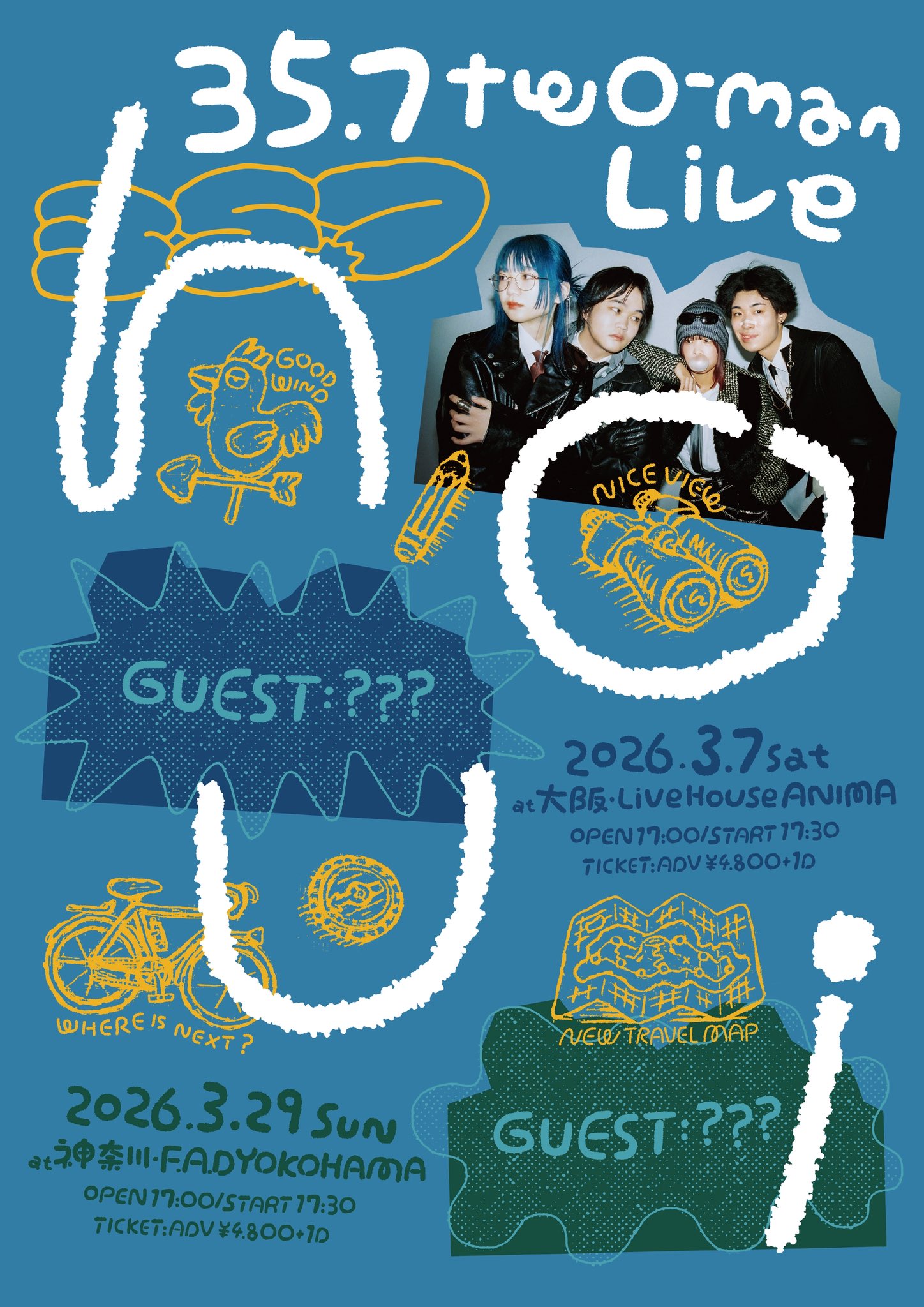 2026/03/07(土) 35.7 two-man live houi 35.7 / ...and more OPEN 17:00 START 17:30 PRICE ADV ¥4800 +1drink(¥600) PLAYGUIDE 発売日:発売中店頭販売 × メール予約 × e+(イープラス) ・未就学児⼊場不可 問い合わせ:キョードーインフォメーション 0570-200-888(11:00〜18:00※⽇曜祝休)