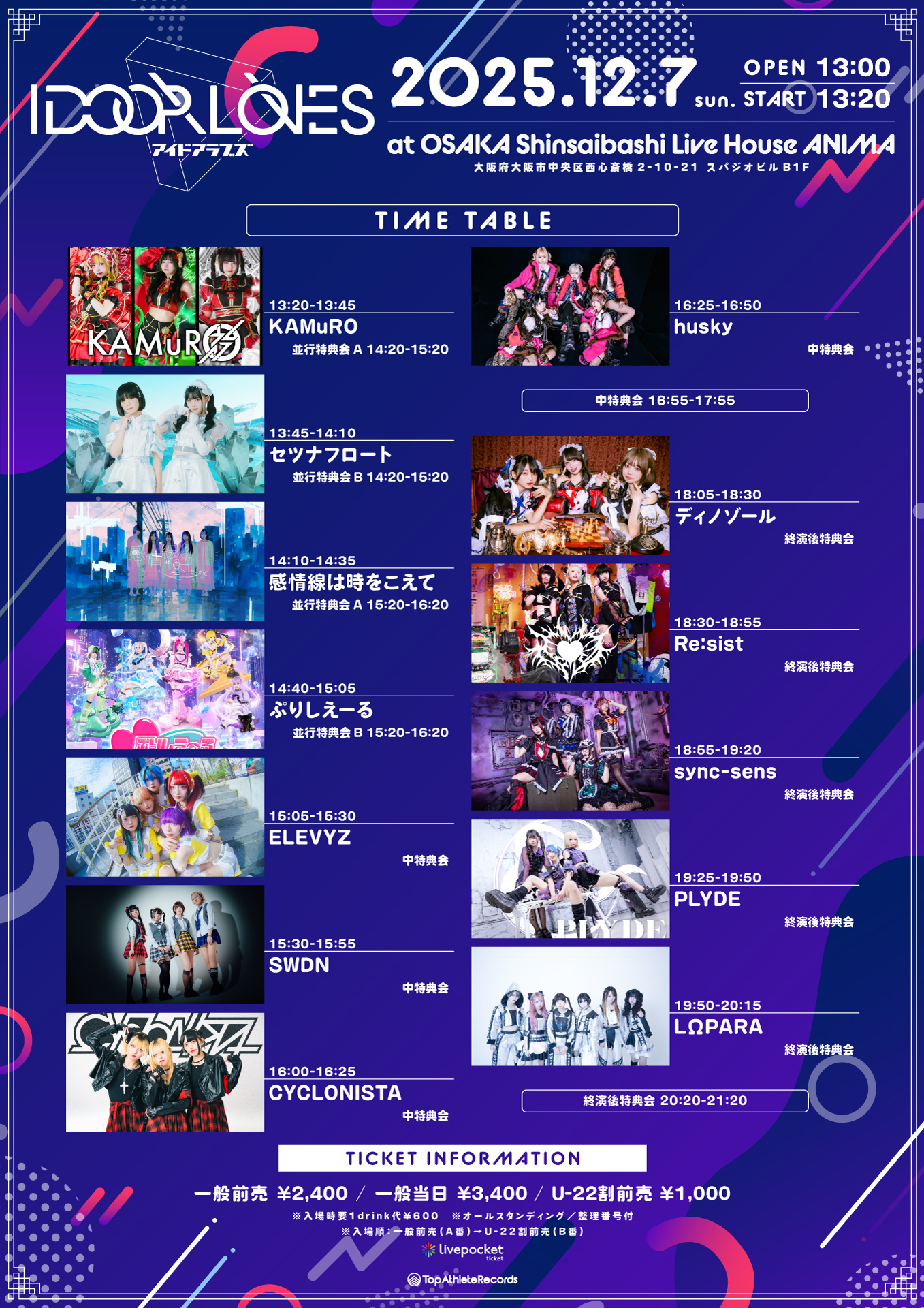 ELEVYZ / KAMuRO / 感情線は時をこえて / CYCLONISTA / SWDN / sync-sens / セツナフロート / ディノゾール / husky / PLYDE / ぷりしえーる / Re:sist / LΩPARA