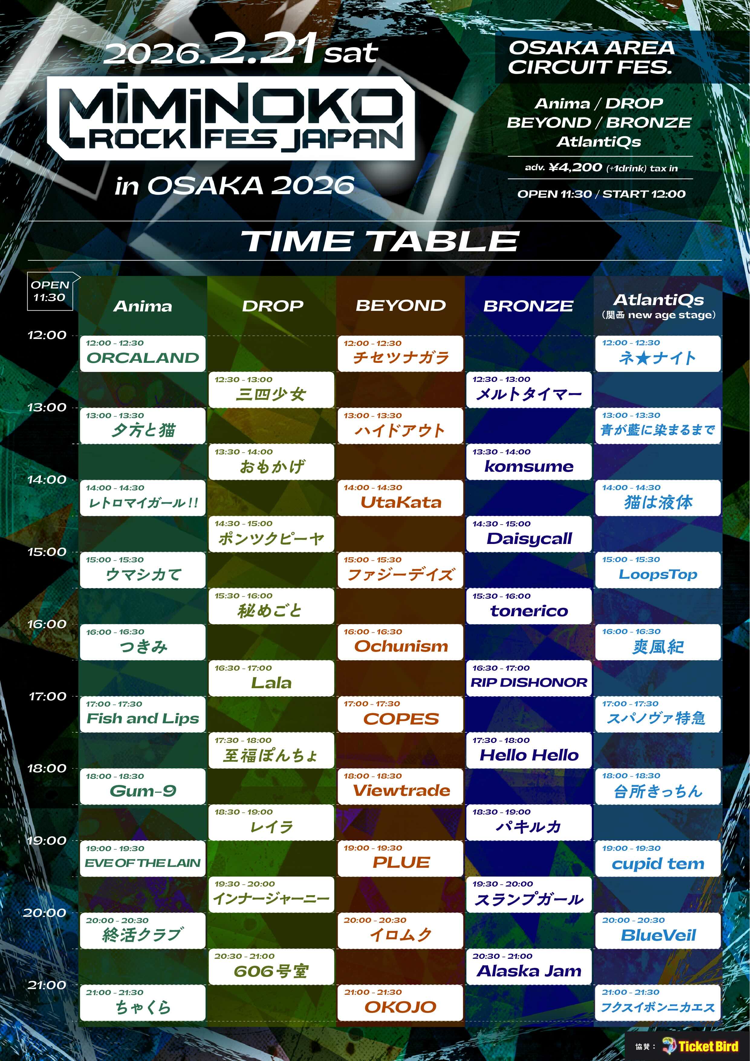 2026/02/21(土) MiMiNOKOROCK FES JAPAN in 大阪 2026