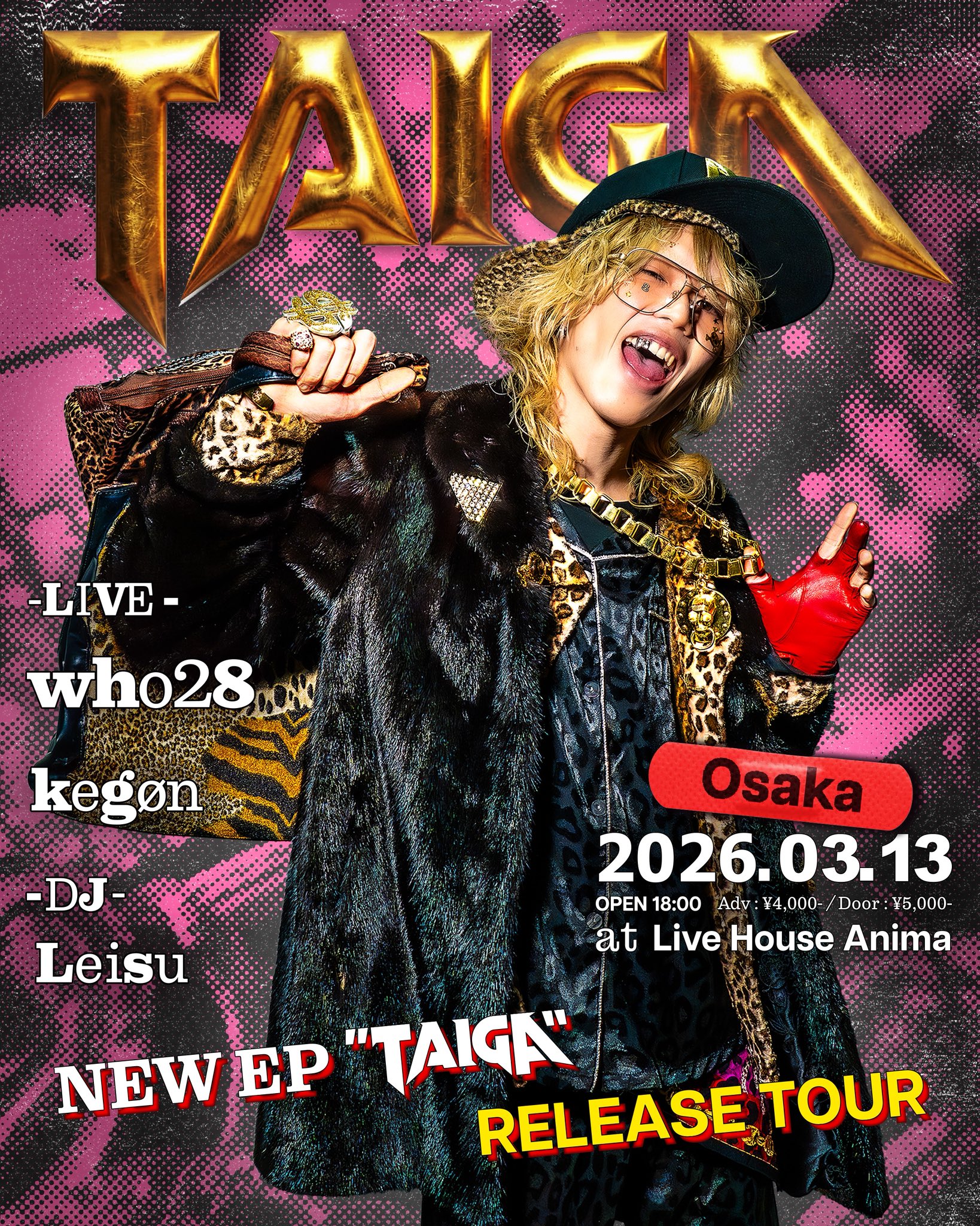 2026/03/13(金) who28 NEW EP 「Taiga」 RELEASE TOUR who28 / yvnlazy 【DJ】Leisu OPEN 18:00 START 18:00 PRICE ADV ¥4300 +1drink(¥600) PLAYGUIDE 発売日:発売中店頭販売 × メール予約 × e+(イープラス) 未就学児童入場不可