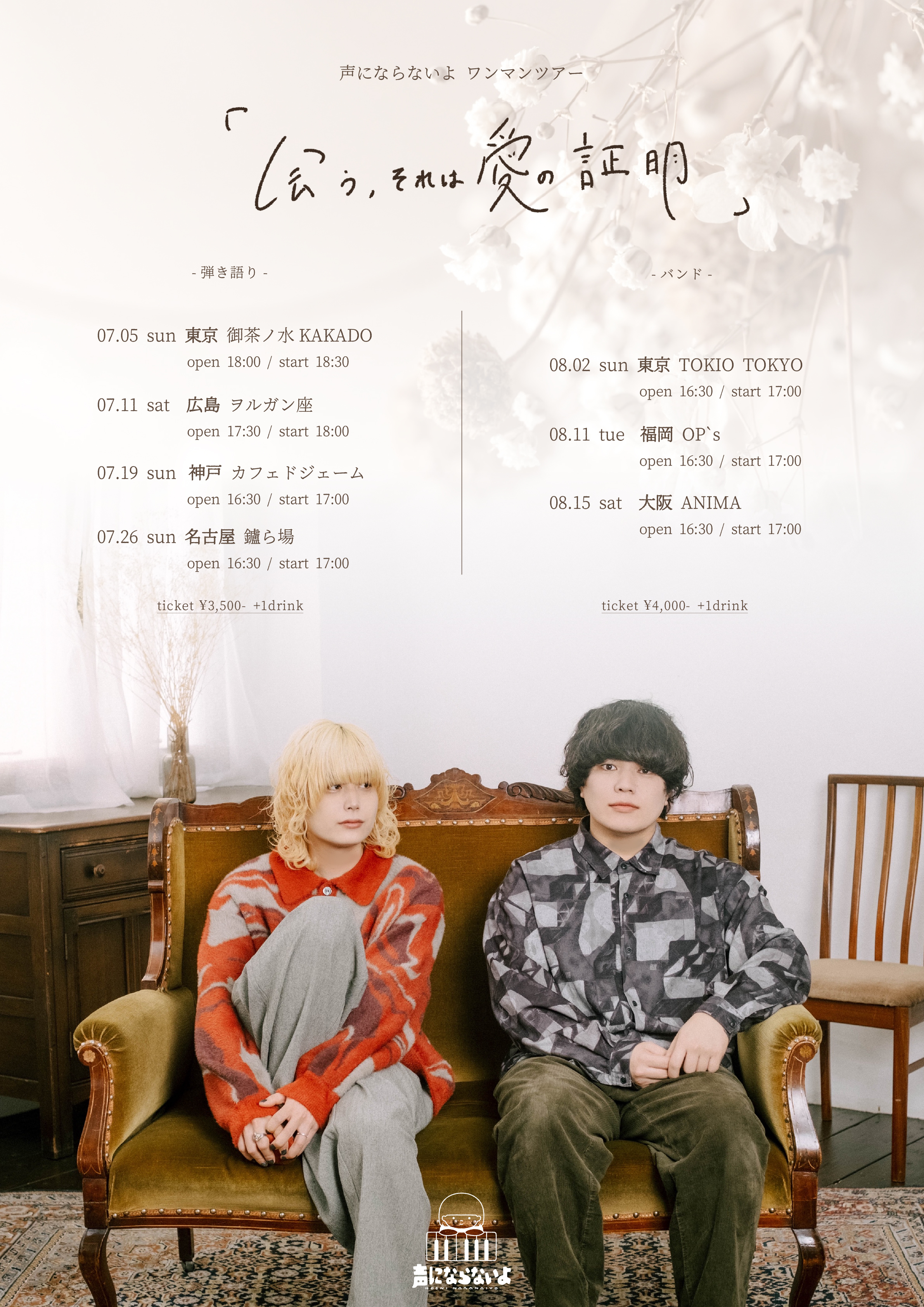 OPEN 18:30 START 19:15 PRICE ADV ¥4000 U-22 ¥2500 DOOR ¥5000 +1drink(¥600)