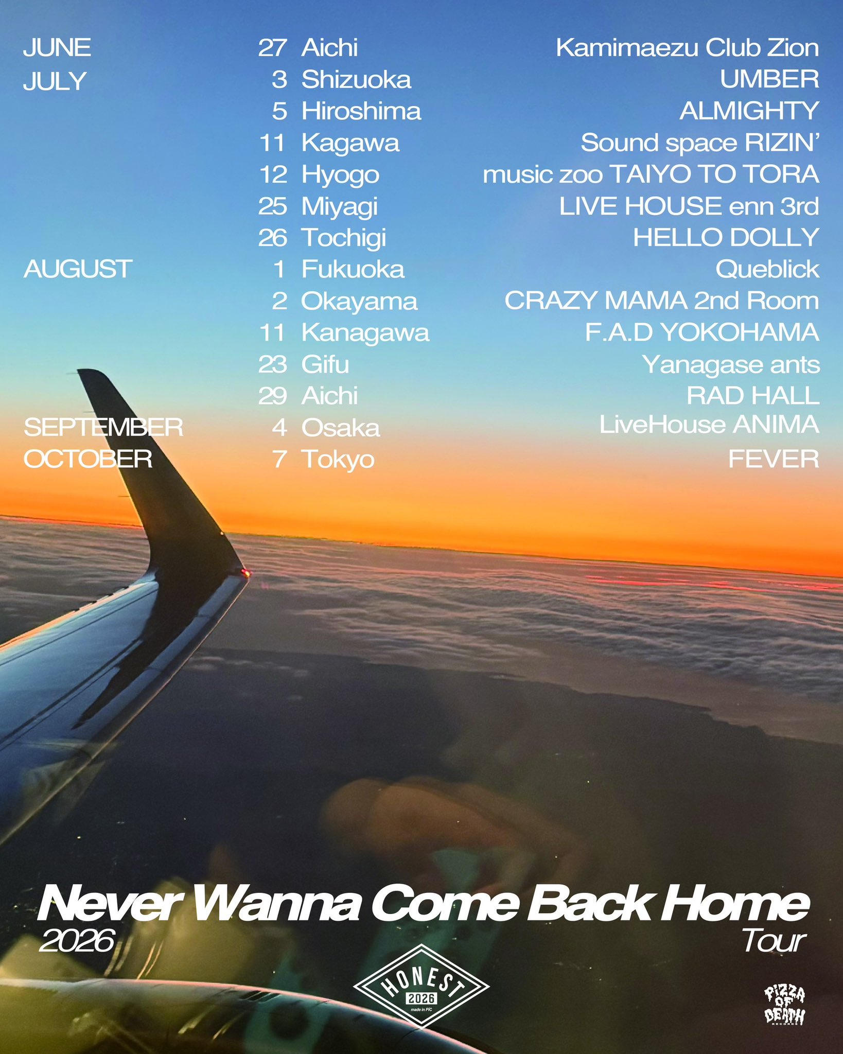 2026/09/04(金) HONEST “Never Wanna Come Back Home Tour”