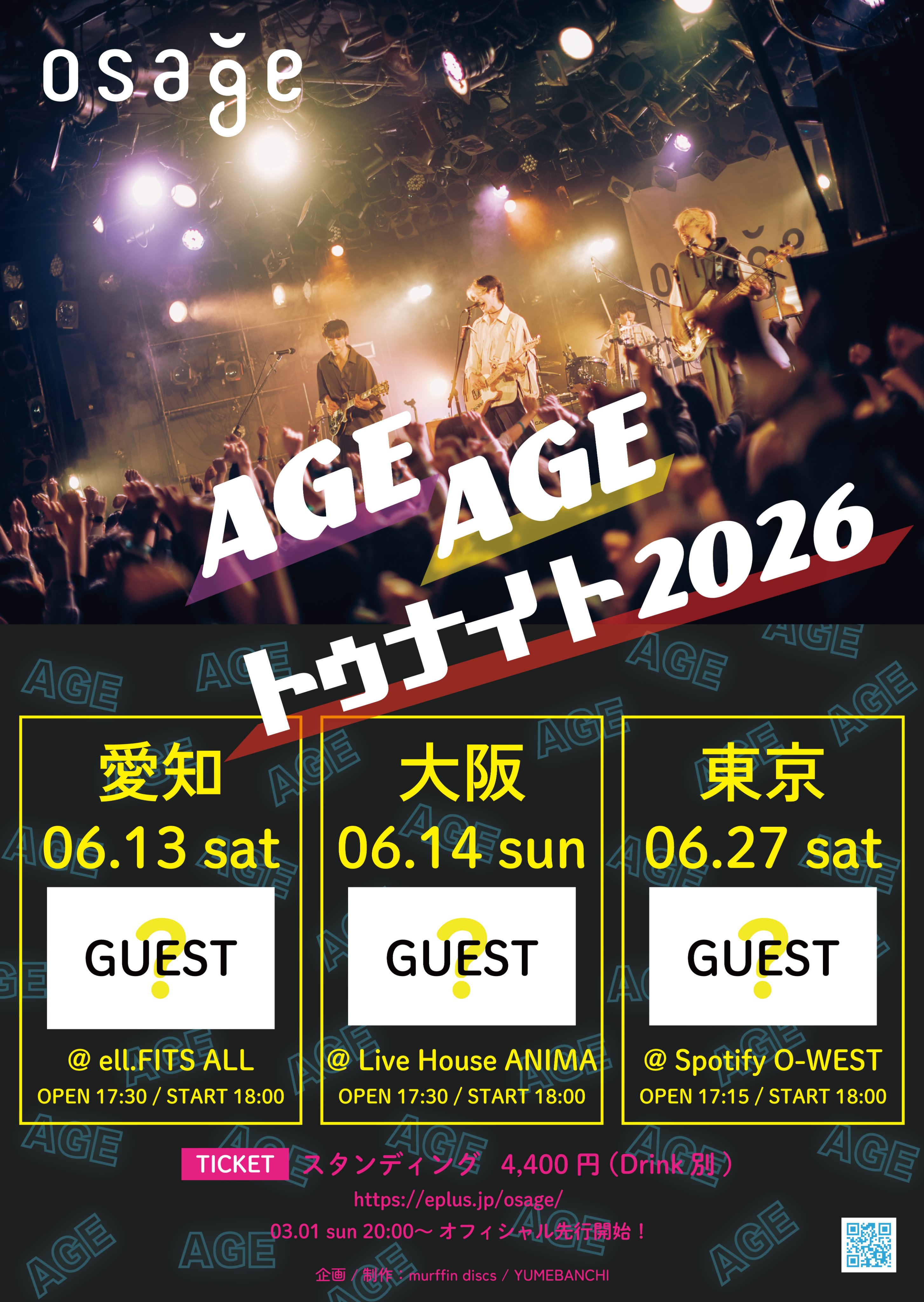 OPEN 17:30 START 18:00 PRICE ADV ¥4400 +1drink(¥600)